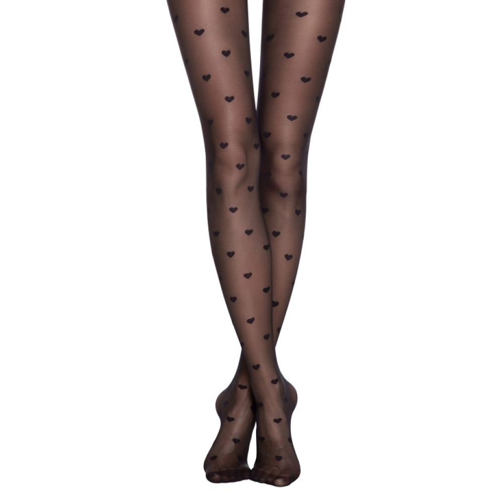 Bonheur is een leuke 20 denier panty met hartjes in een matte look. De panty heeft een gladde structuur en is doorlopend transparant. Deze panty draagt zeer fijn dankzij de platte naden en een katoenen kruis.