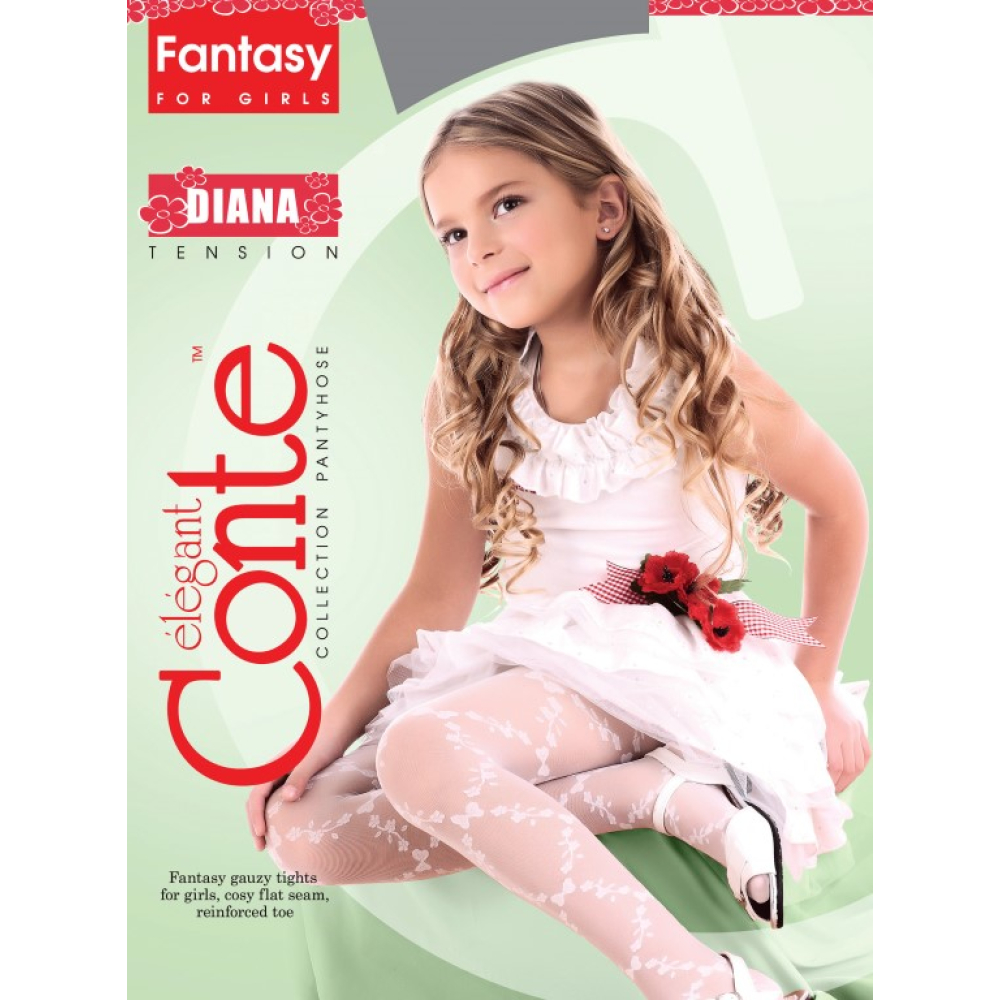 Diana is een dunne kinderpanty met bloem en strikjes motief en een mooie subtiele glans. Verder heeft deze kinderpanty een zeer fijne pasvorm dankzij voldoende elastan, platte naden en een comfortabele tailleband. Deze schattige panty is eindeloos te combineren met elke outfit.