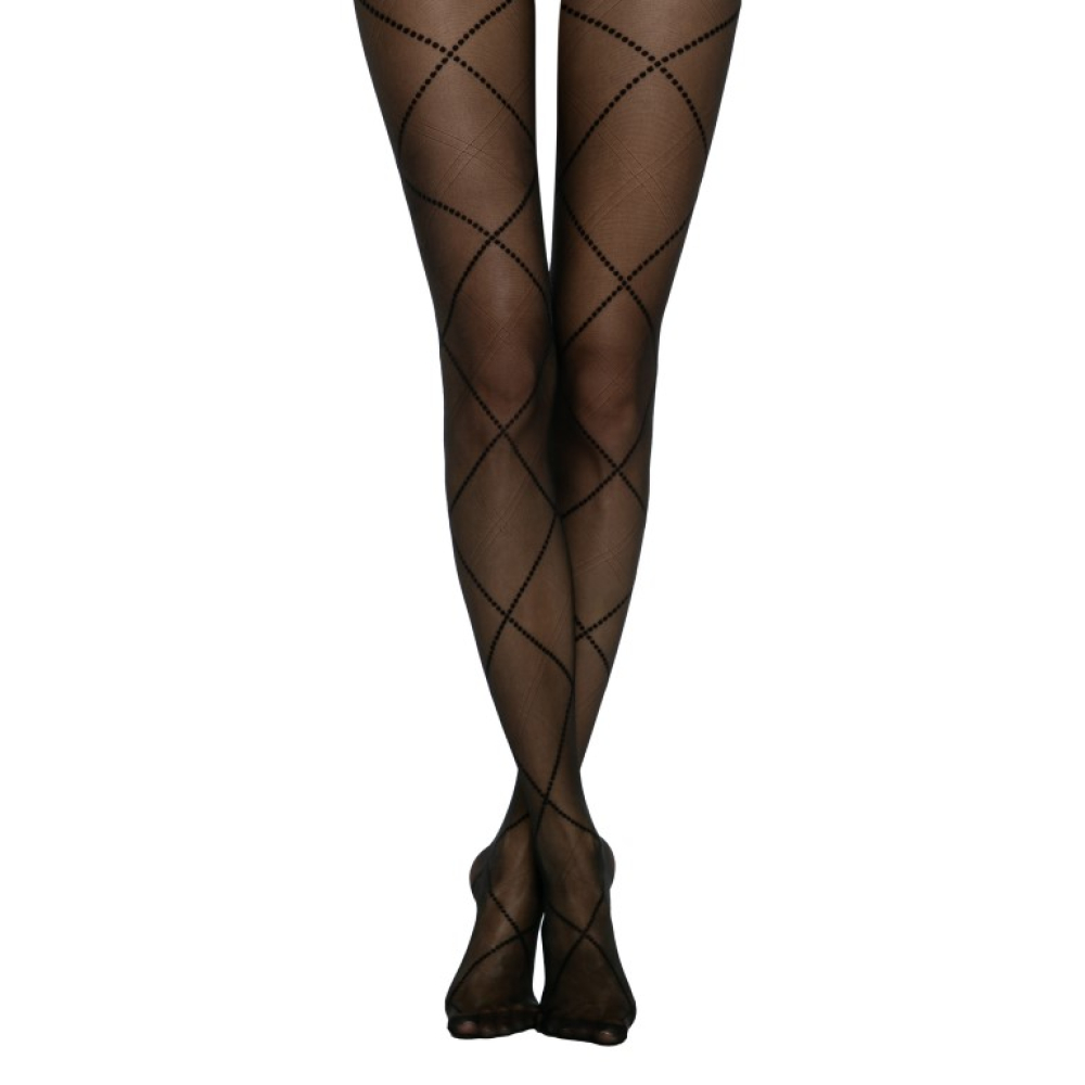 Galerie is een mooie fijne panty met een leuk ruit patroon, d.m.v. kleine blokjes. Deze elastische panty heeft een lichte glans. Het patroon loopt door tot de taille.