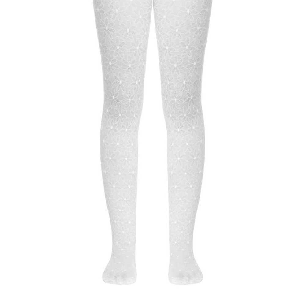 Jasmine is een dunne fantasiepanty voor kinderen met een patroon van madeliefjes. Het patroon loopt door tot de billen zodat de panty mooi gecombineerd kan worden met een jurkje of rok. Deze kinderpanty is transparant, heeft een fijne netstructuur en een matte optiek. Verder is dit model voorzien van een comfortabele tailleband met platte naden. Door het hoge percentage elastaan sluit deze kinderpanty zeer mooi om de benen.