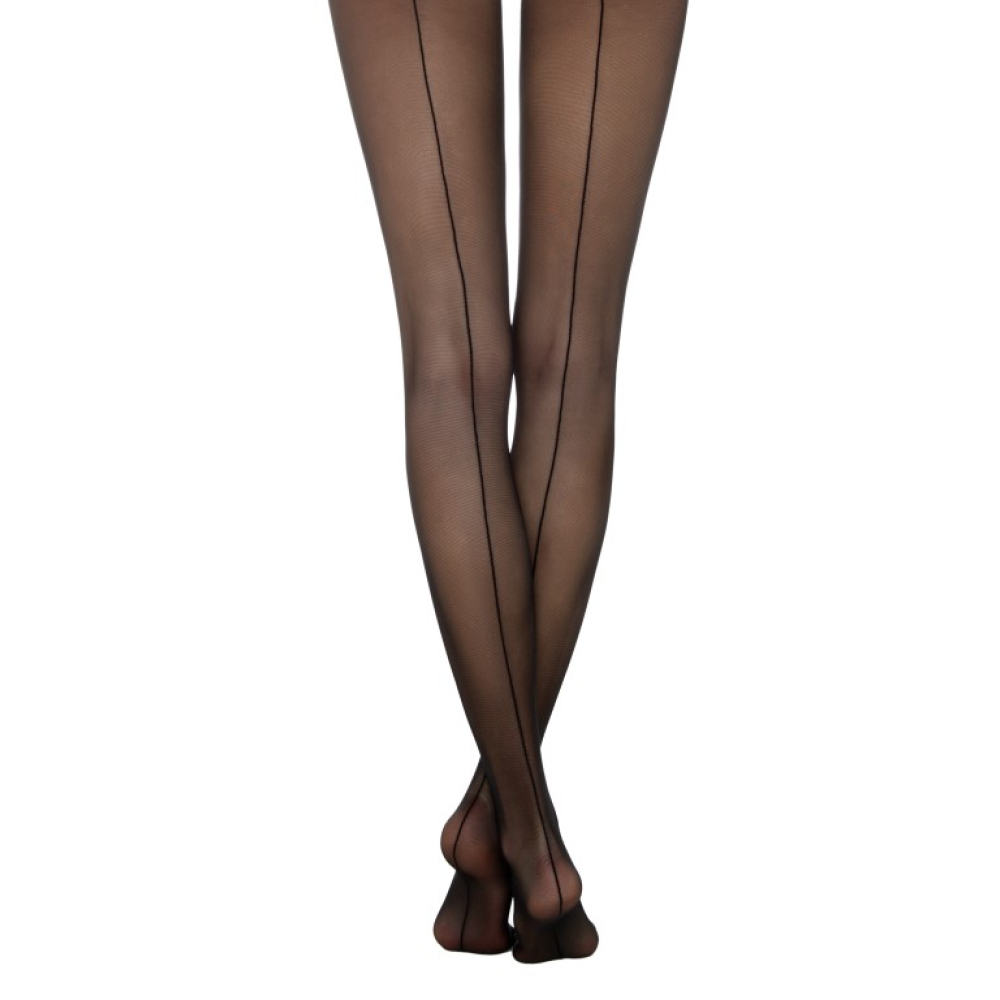 Line is een mooie fijne panty met een naad aan de achterzijde van het been. Deze elastische panty heeft een lichte glans. Het patroon loopt door tot de taille. De panty heeft een mooie fantasie transparante broek.