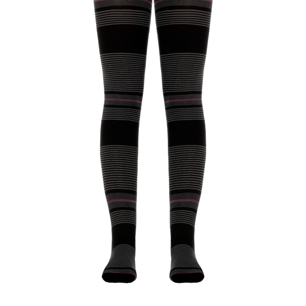 Marit is een stevige 50 denier kinderpanty met een leuk patroon van grijze strepen en een contrasterende fuchsia streep in een matte look. De panty is gemaakt van microfiber en is daardoor heel elastisch en zacht. Door het subtiele patroon is deze panty superleuk te combineren met elke dagelijkse outfit.