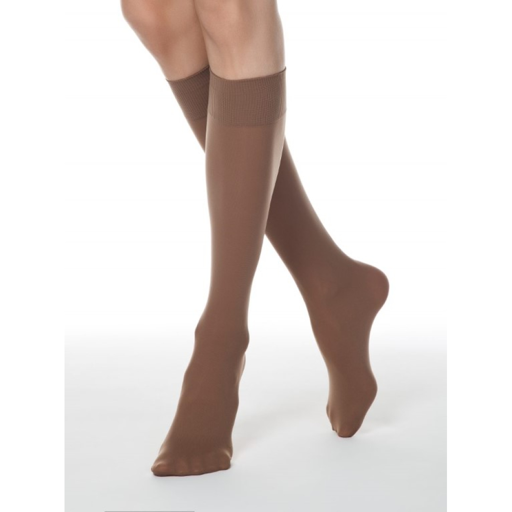 Deze 50 denier pantykniekousen zijn gemaakt van zachte microfiber met een matte optiek. De kniekousjes hebben verstevigde tenen met platte naden en een comfortabele, brede, niet knellende boord. De panty kniekousen zijn elastisch, waardoor ze perfect in elke maat passen. Dit model is niet doorschijnend en is verkrijgbaar in de kleur naturel, bronz, shade, mocca en zwart.